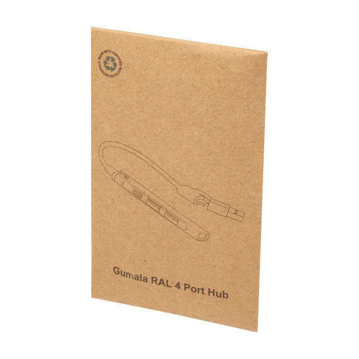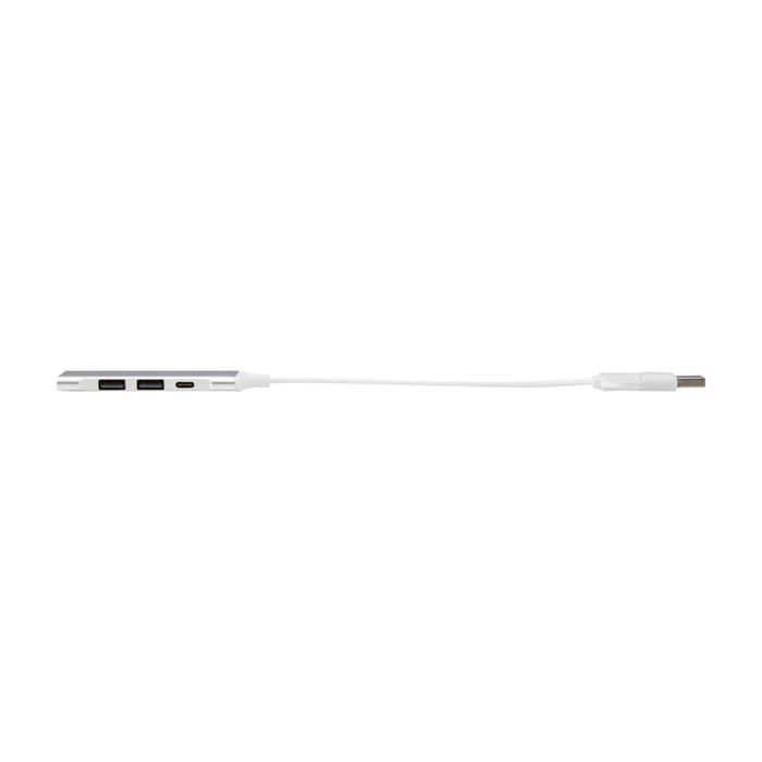 Hub à 4 ports, fabriqué en aluminium recyclé, avec connecteurs d’entrée USB-A et USB-C et sorties 1× USB-C + 3× USB-A, permettant de connecter plusieurs périphériques et de transférer des données jusqu’à 480 Mbps ; solution compacte pour étendre les ports d’un ordinateur portable ou de bureau.