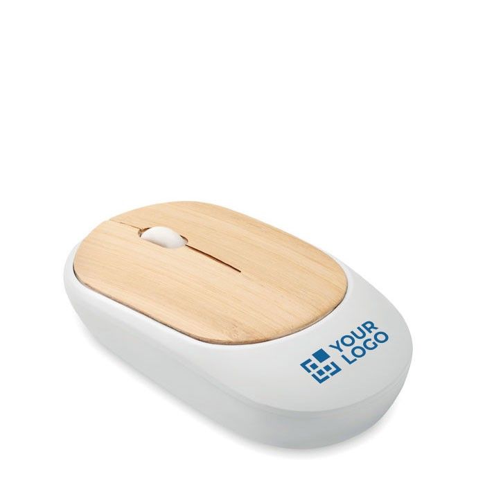 Souris sans fil en ABS recyclé avec couvercle en bambou naturel