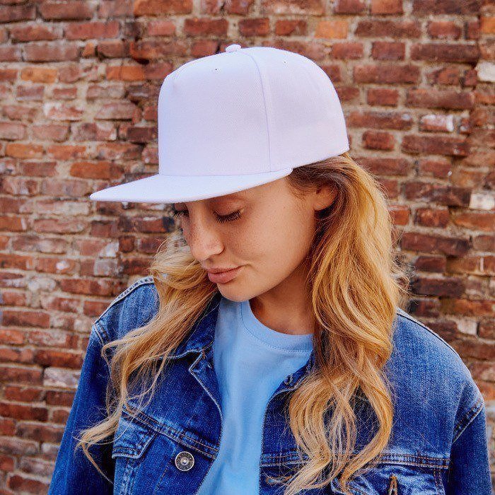Casquette 5 panneaux écoresponsable en polyester recyclé, visière plate.