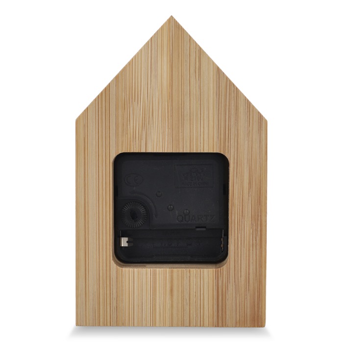 Horloge en forme de maison qui apporte personnalité et gestion du temps à votre espace de travail. Sa finition en bambou souligne vos valeurs écoresponsables.