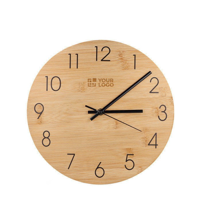 Horloge personnalisable murale en bambou avec logo gravé Less