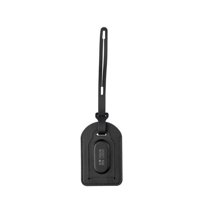 Étiquette de bagage avec tracker personnalisable, idéale pour entreprises connectées.