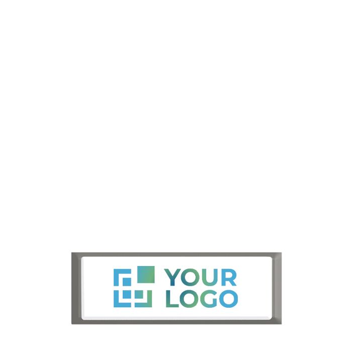 Plaque d’identification élégante argent mat avec fermeture magnétique sécurisée.