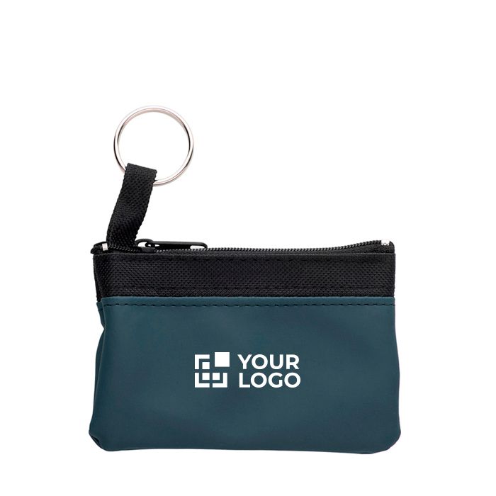 Porte-monnaie simple en nylon fermeture éclair noire et porte-clés