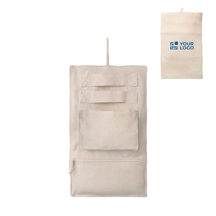 Bijoutier de voyage accrochable en coton à 2 compartiments