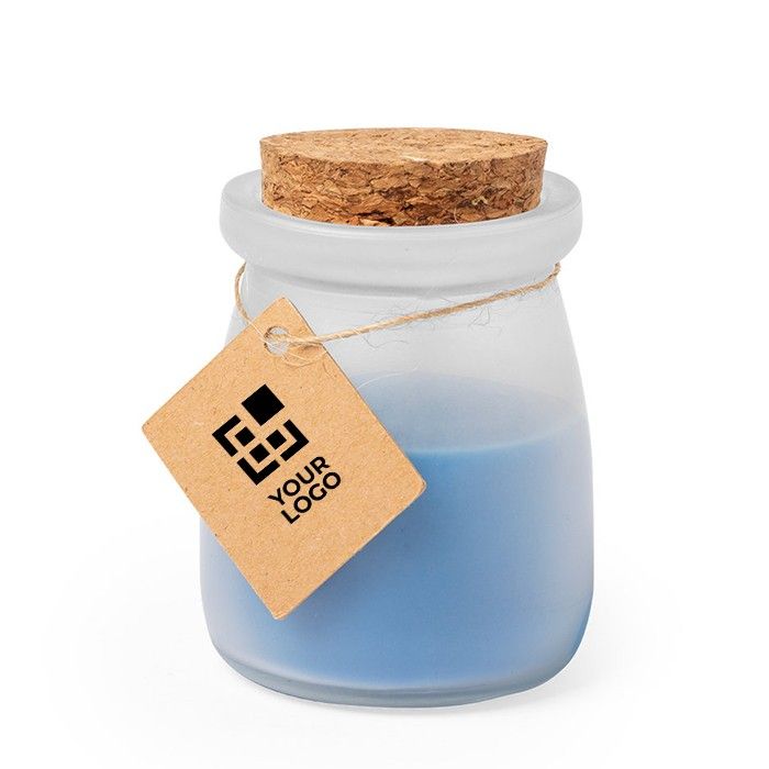 Bougie de differents parfums avec etiquette en carton personnalisable