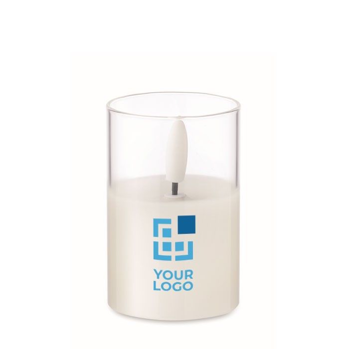 Petite bougie LED effet flamme, idéale pour cadeaux d'affaires.