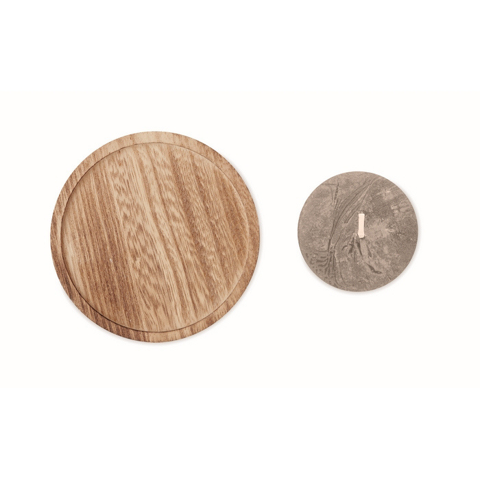 - Bougeoir en bois de peuplier naturel avec bougie parfumée à la vanille.