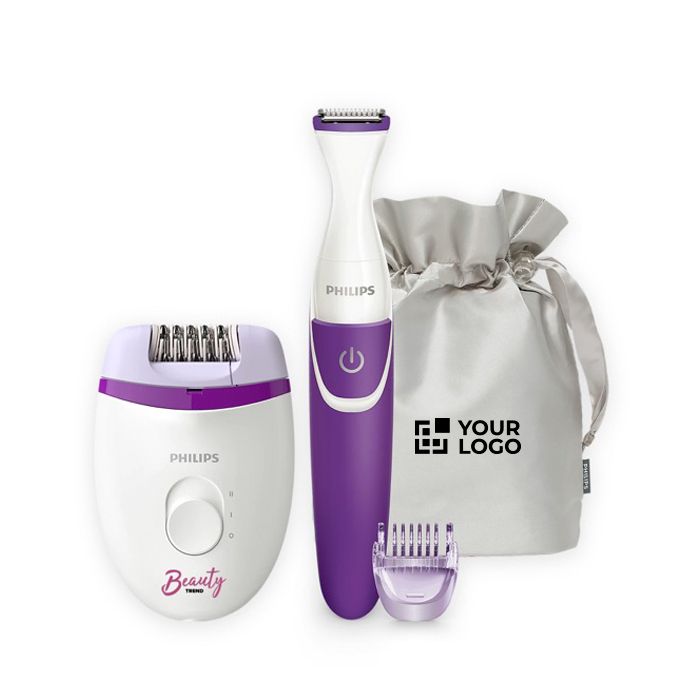 Épilateur et mini tondeuse dans un étui en satin marque Philips
