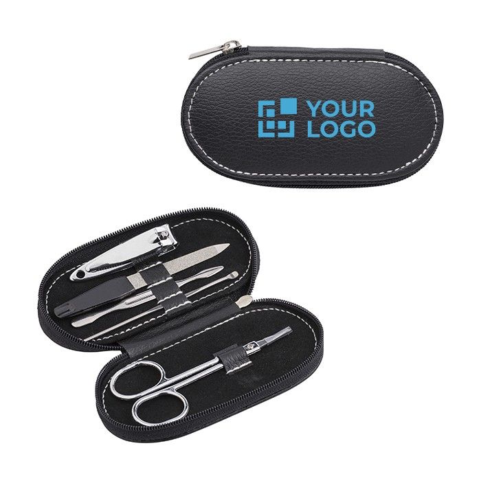 Set de manucure Deluxe, élégant coffret arrondi, cinq accessoires inclus.