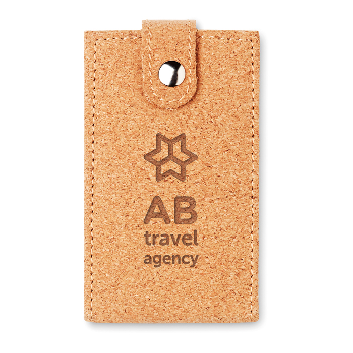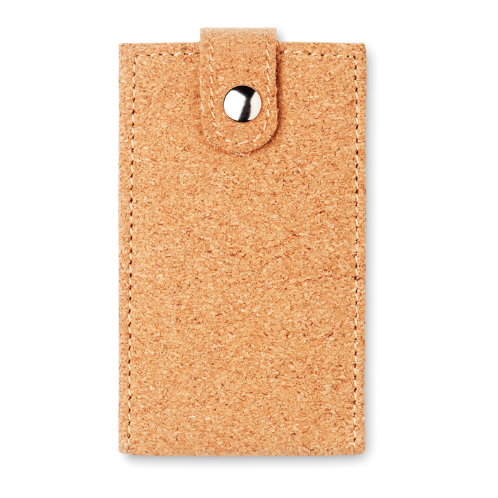 Ensemble de manucure dans une pochette rectangulaire en liège. Les 6 outils sont en acier inoxydable.