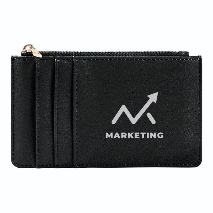 Accessoire simple en cuir synthétique, résistant et durable, pour cartes et monnaie. Faites ressortir votre entreprise avec un détail élégant.