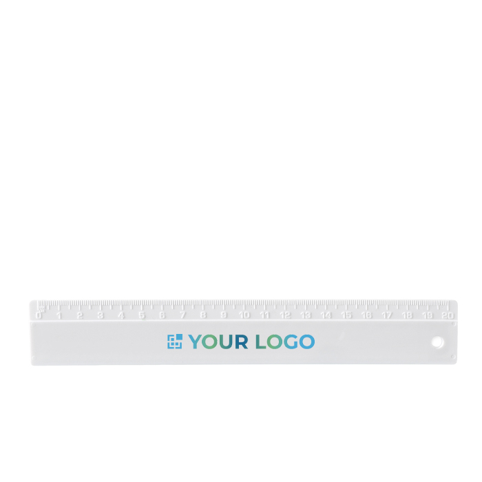 Règle avec échelle en relief de 20 cm. Personnalisable, utile pour usage scolaire ou de bureau.