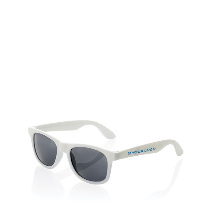 - Monture fabriquée en plastique recyclé avec protection UV400, idéale pour les goodies éco-responsables.