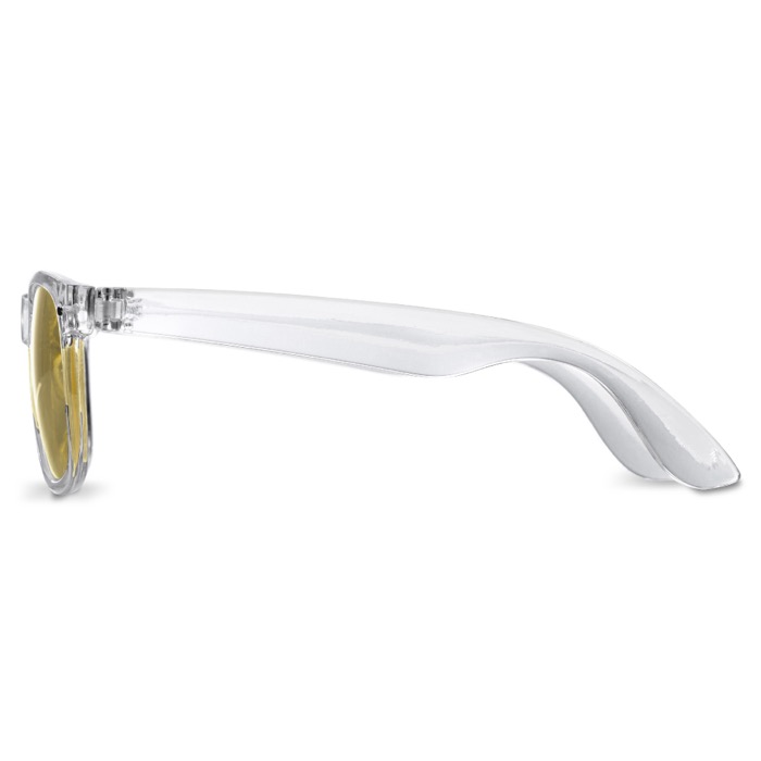 Une paire de lunettes de soleil transparentes avec montures colorées et protection UV400 offre un style moderne et une polyvalence appréciable. Le design translucide et les teintes vives attirent l'attention, tandis que la protection UV400 assure le confort et la sécurité oculaire. Adaptées à tous les publics, hommes ou femmes, elles sont un choix pertinent pour les campagnes estivales, les festivals ou les événements d'entreprise. Les verres sont équipés d'un filtre UV-400 qui protège les yeux pendant les beaux jours ensoleillés. Cet accessoire fonctionnel est un moyen efficace de renforcer la reconnaissance de votre marque et de créer un lien positif avec une audience large, laissant une impression de modernité et de bien-être.