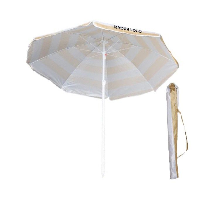 Parasol de plage bicolore, protection élégante pour vos événements estivaux.