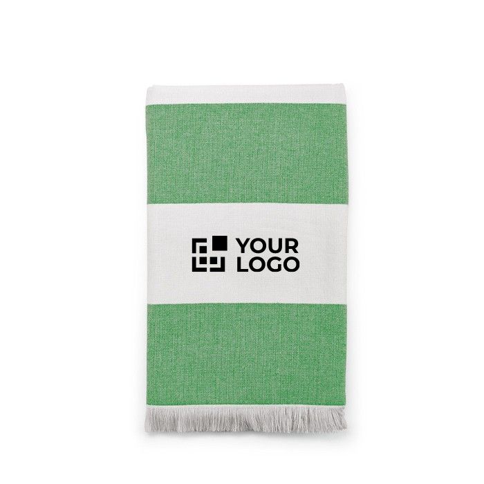 Serviette de plage personnalisable 80x160 cm en coton recyclé et à rayures 350 g/m²