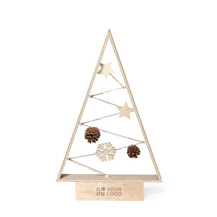 Sapin de Noël personnalisé en bois naturel avec tresse lumineuse LED