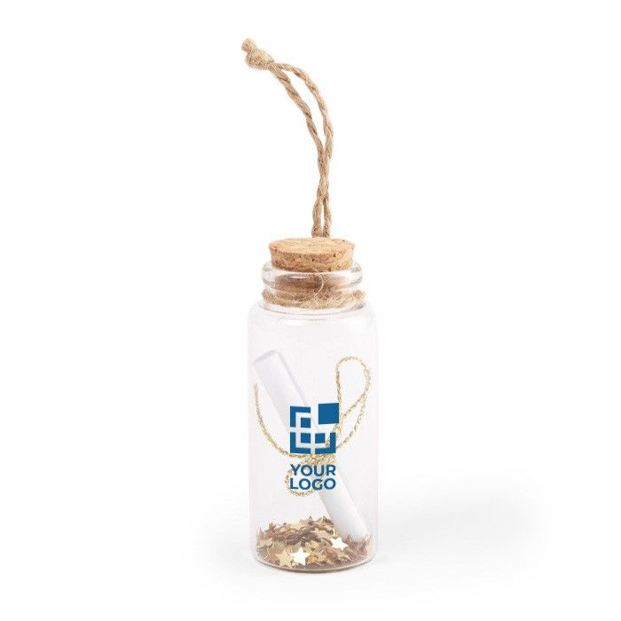 - Fabriqué en verre, avec parchemin inclus pour personnaliser chaque message.