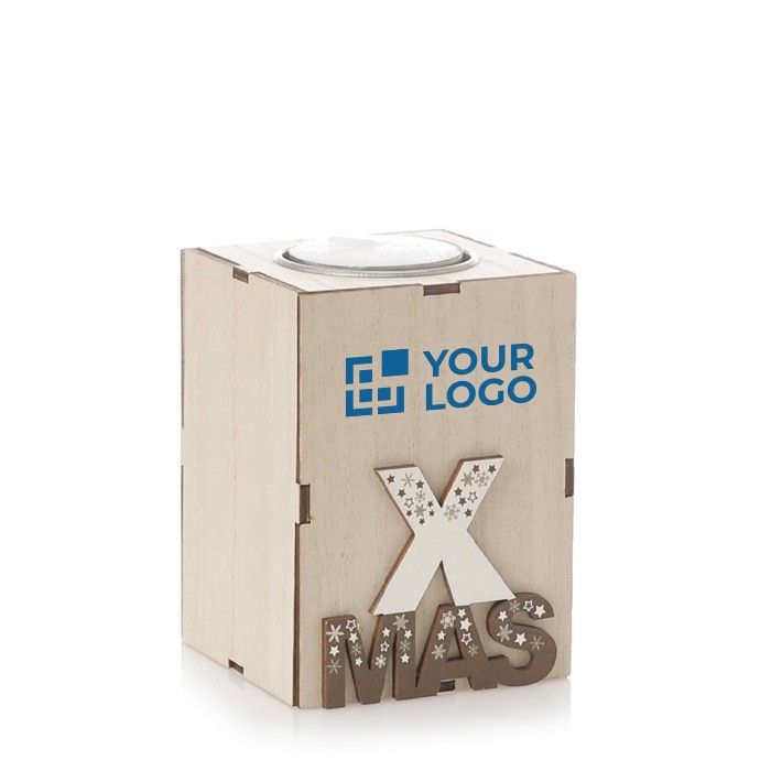 Bougie de Noël en bois parfumée vanille, cadeau d’entreprise idéal.
