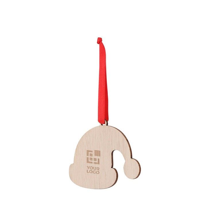 Déco festive en bois, bonnet Noël rouge pour cadeaux d'entreprise.