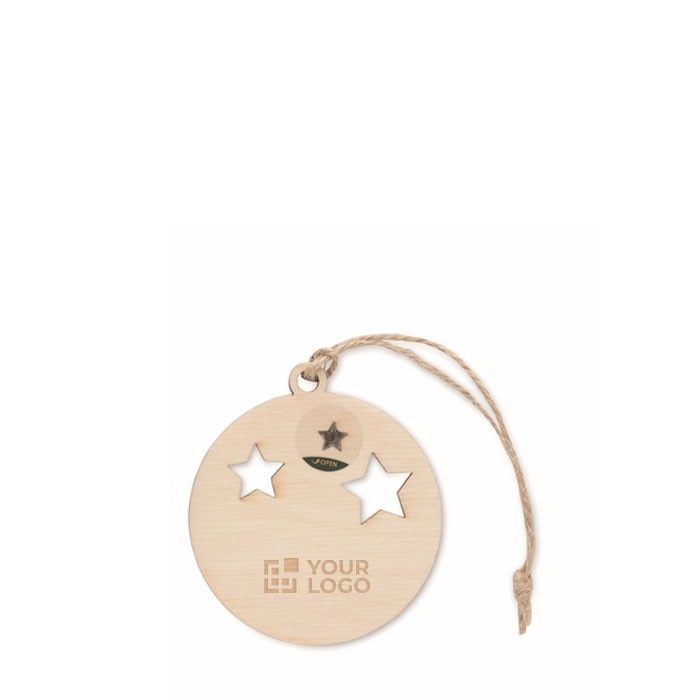 Boule de Noël en bois naturel avec cordon en jute élégant.