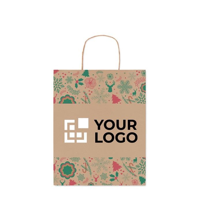 Sac cadeau de Noël en papier recyclé, format pratique et durable.