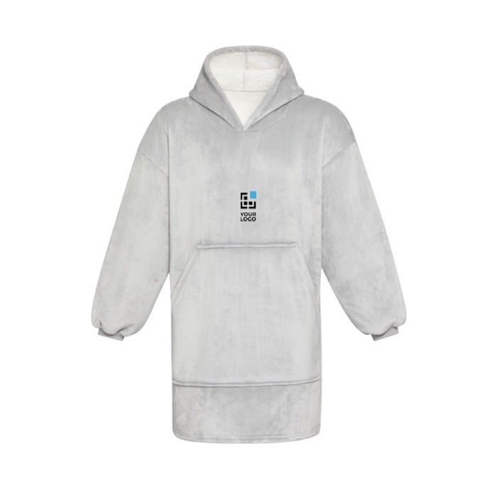 Couverture à capuche en flanelle, poche frontale, polyester recyclé.