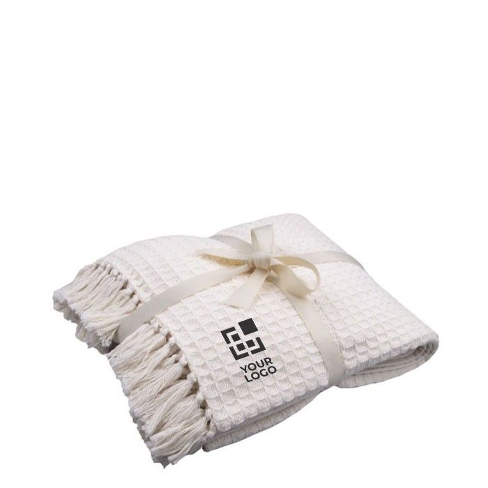 Couverture coton personnalisée, élégante et idéale pour vos cadeaux d’affaires.