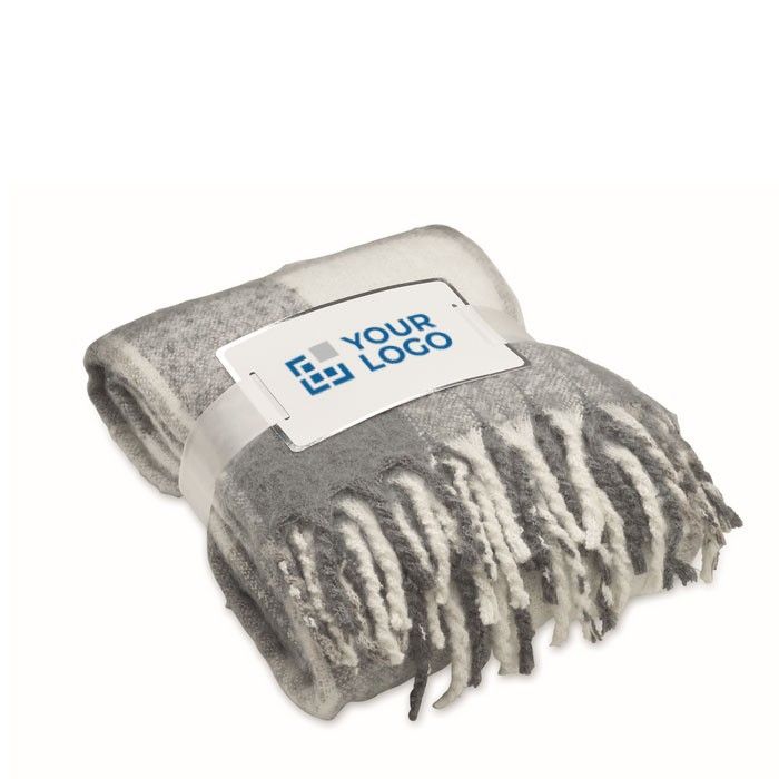 Plaid en polyester recyclé (RPET) à carreaux avec franges