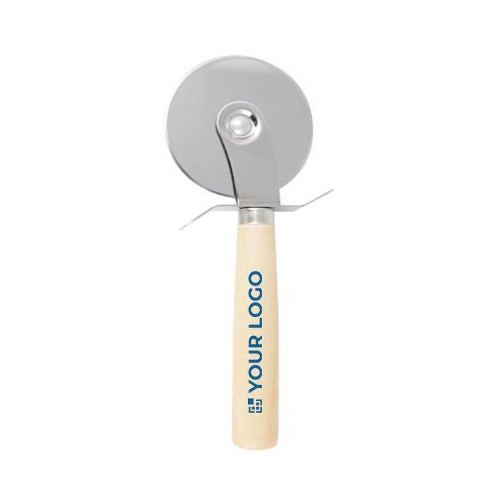 Coupe-pizza en bois et acier inoxydable avec le logo gravé Bamboo