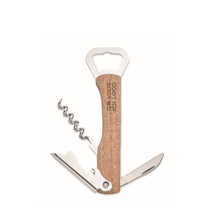 Ouvre-bouteille bambou multifonction, élégant et pratique pour entreprises