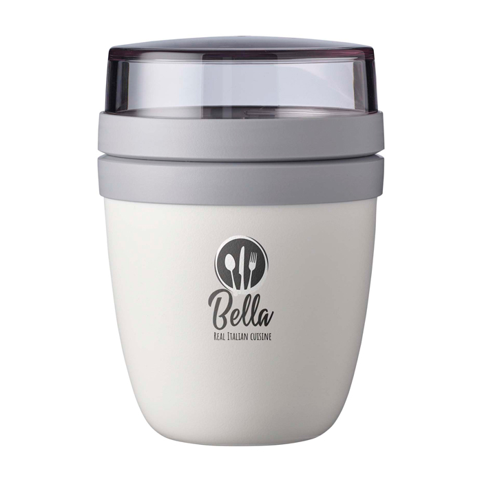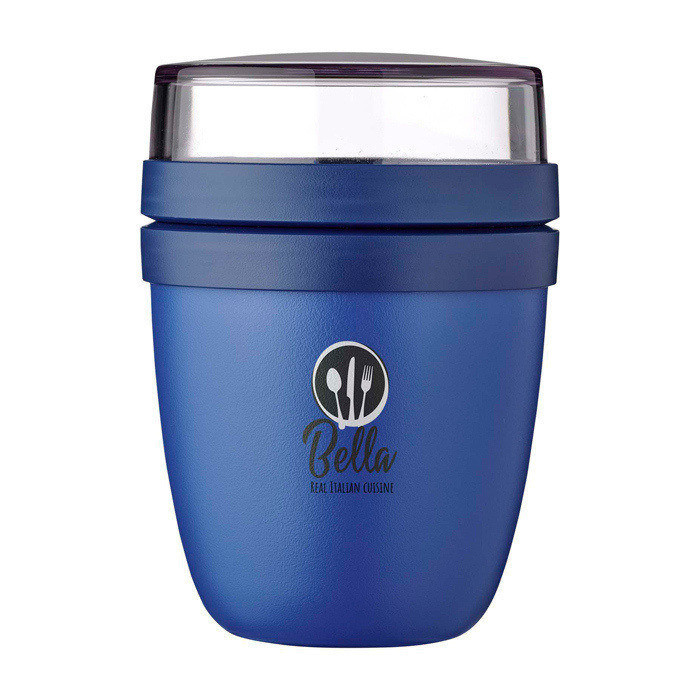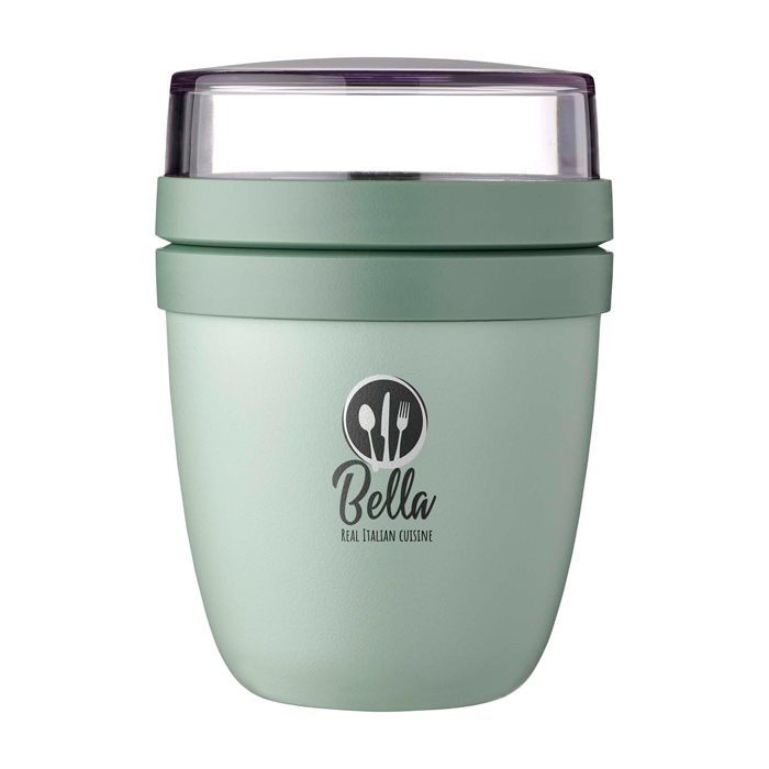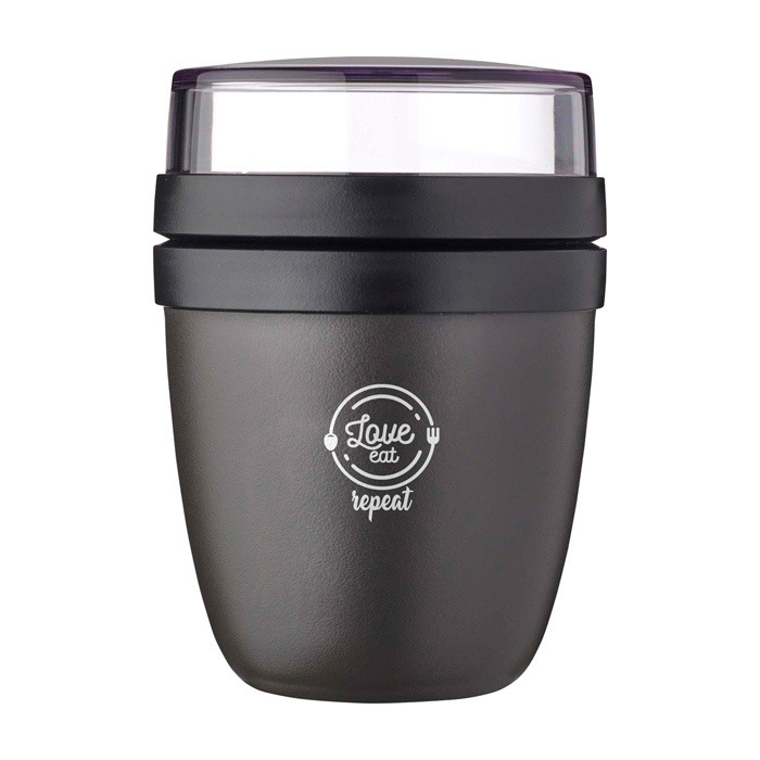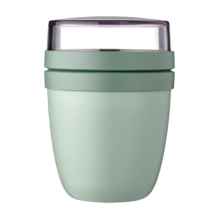 Lunch box polyvalente pour snacks variés (yaourt + muesli ou soupe + croûtons). Elle comprend deux compartiments ingénieux pour séparer les ingrédients jusqu’à la dégustation. Compacte, elle convient parfaitement au cartable et permet un repas rapide partout. Capacité : 120 ml pour le compartiment transparent (≈ 50g de muesli ou fruits) + 300 ml pour le compartiment principal. Hermétique, compatible lave-vaisselle, sans BPA.