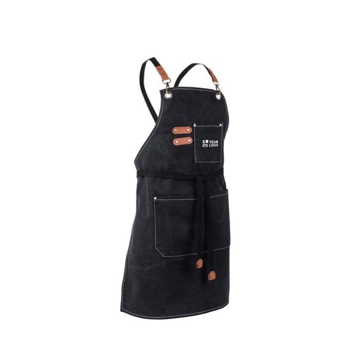 Tablier effet denim avec plusieurs poches et détails en PU