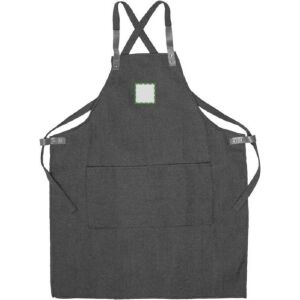 Un tablier en denim composé à 65 % de polyester et 35 % de coton (280 g/m²) avec des bretelles et deux poches avant. Il s’ajuste aux épaules grâce aux sangles. Présenté dans une boîte cadeau en carton brun.