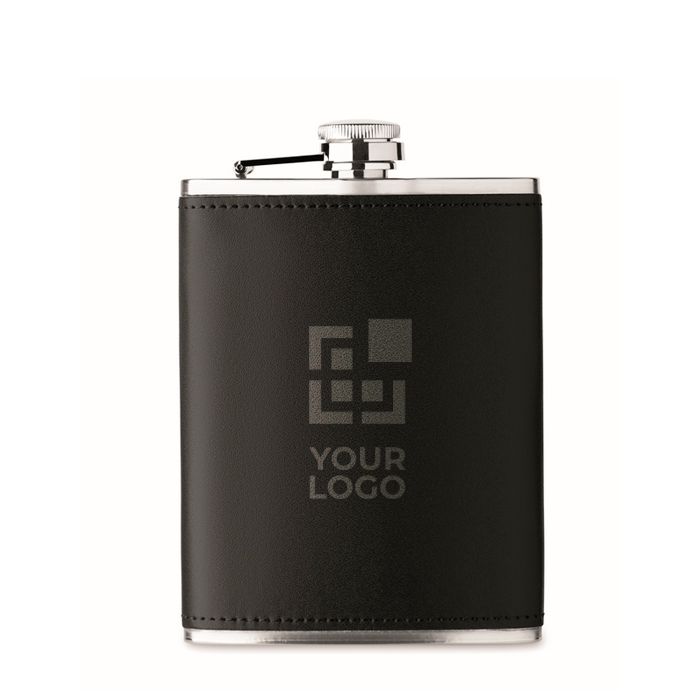 Flasque en acier inoxydable, cuir synthétique, 200 ml