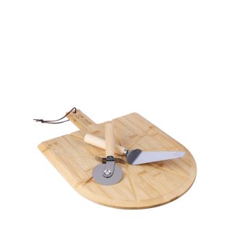 Planche à pizza en bambou avec coupeur, guides et spatule