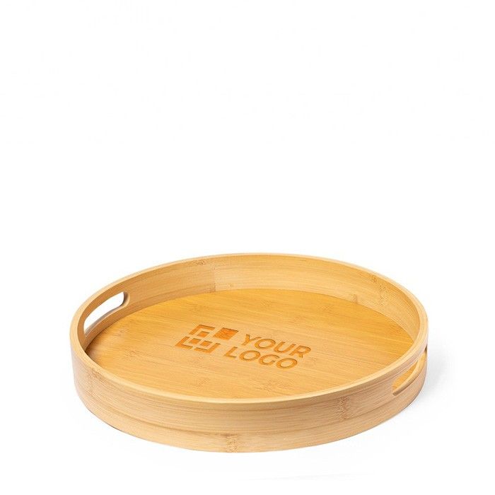 Plateau circulaire pour boissons en bambou naturel à double poignée