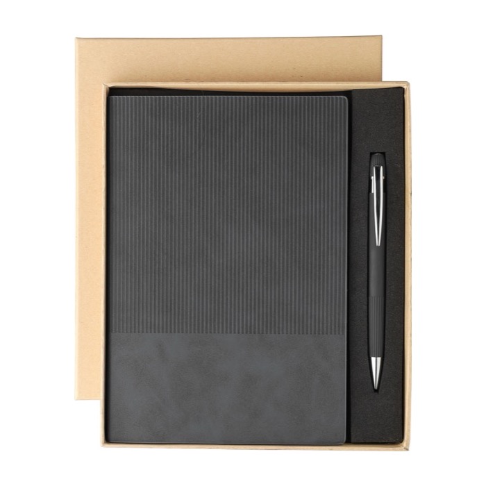 Cet ensemble, composé d'un carnet A5 recyclé avec une couverture à effet velours et d'un stylo en aluminium, constitue un outil professionnel distinctif. Offrez un carnet lors de séminaires ou de sessions de formation pour équiper vos participants, leur permettant de capturer des informations clés. C'est également un élément valorisant dans un pack de bienvenue destiné aux nouveaux collaborateurs, soulignant une attention à leur équipement quotidien. La conception durable de ce set renforce l'image d'une entreprise consciente de ses valeurs et de la qualité des supports qu'elle fournit, favorisant ainsi la fidélisation.