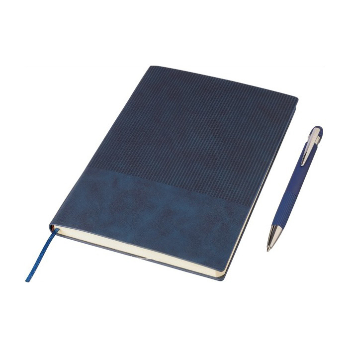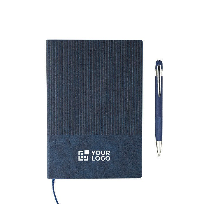 Carnet A5 effet velours avec stylo bleu pour vos cadeaux d'affaires.