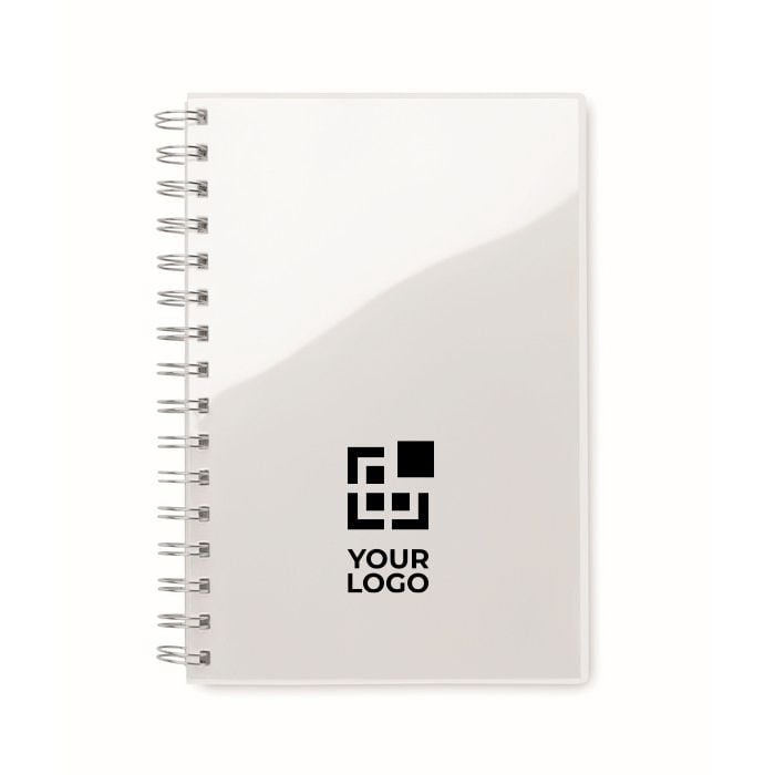 Carnet A5 avec couverture en RPET et 160 pages de papier ligné (80 feuilles). Ce carnet, avec un design à spirales noires, est idéal pour prendre des notes lors des réunions de bureau ou pendant les cours et formations. De plus, en étant fabriqué avec des matériaux recyclés, il intègre une dimension durable, parfaite pour promouvoir les valeurs environnementales de votre entreprise. Vous pouvez y ajouter votre logo sur l'une ou l'autre des faces et avec différentes techniques de marquage, dont certaines permettent d'obtenir des designs et des résultats en couleur. Commandez-le avec une livraison rapide.