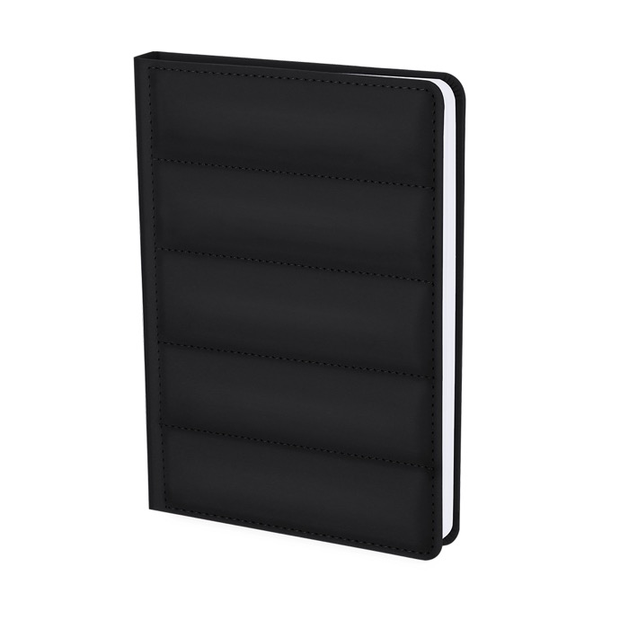 Bloc-notes A5 à couverture rigide et matelassée. En PU doux. Contient 110 pages lignées.