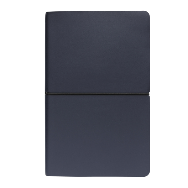 Carnet A5 au design moderne et sophistiqué, idéal pour un usage quotidien professionnel ou personnel. Contient 96 feuilles (192 pages) de papier ligné couleur crème de 80 g/m², offrant une écriture fluide et confortable. Sa couverture est fabriquée en PU doux au toucher, un matériau durable qui apporte un aspect élégant et actuel. Inclut une fermeture horizontale avec bande élastique noire, discrète et fonctionnelle, qui maintient le carnet fermé en toute sécurité. Une option distinguée qui transmet professionnalisme et attention aux détails, idéale pour renforcer l'image de marque lors de réunions, événements ou comme cadeau personnalisé.