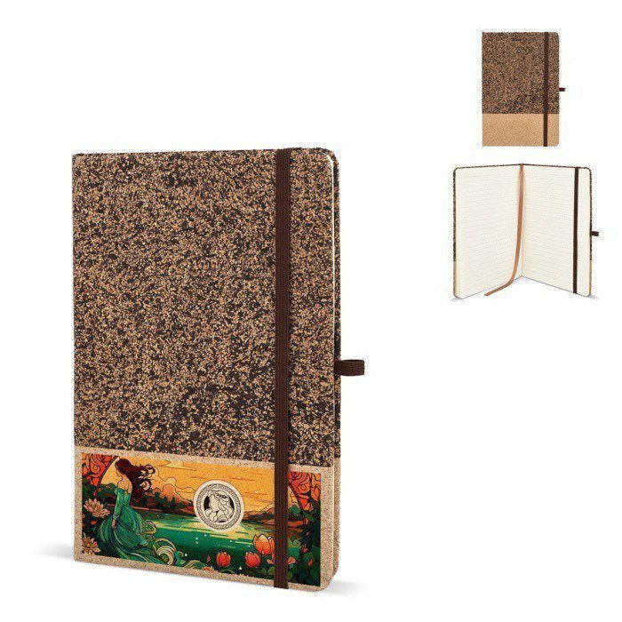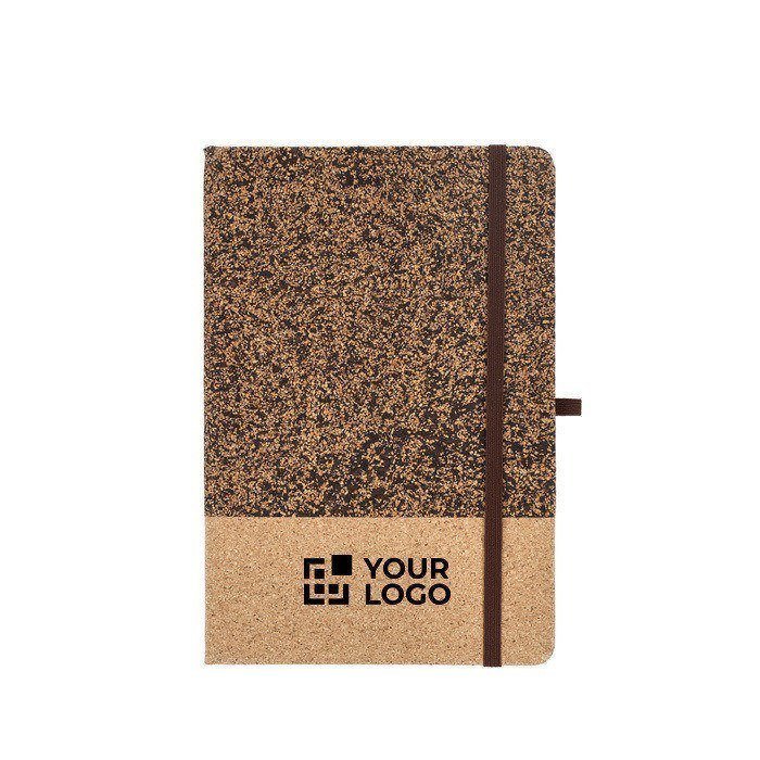 Apportez une touche unique à vos notes professionnelles avec ce carnet original à couverture en liège et marc de café, doté d’un élastique et d’un porte-stylo.