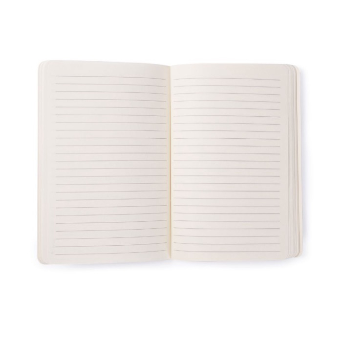 Carnet A5 avec couverture souple en PU. 96 pages 70 g/m², lignées en crème, poche intérieure et élastique de fermeture.