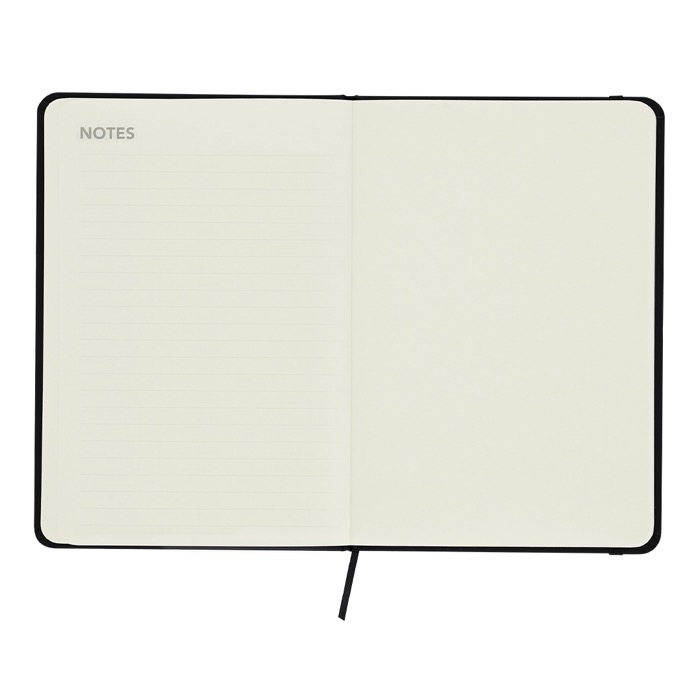 Carnet planificateur mensuel, légèrement plus grand que A5, en PU souple avec bande élastique. Contient : 98 pages crème sans lignes, 13 pages de planification mensuelle, pages lignées pour notes.