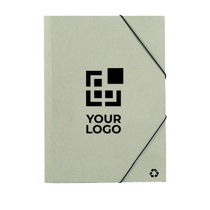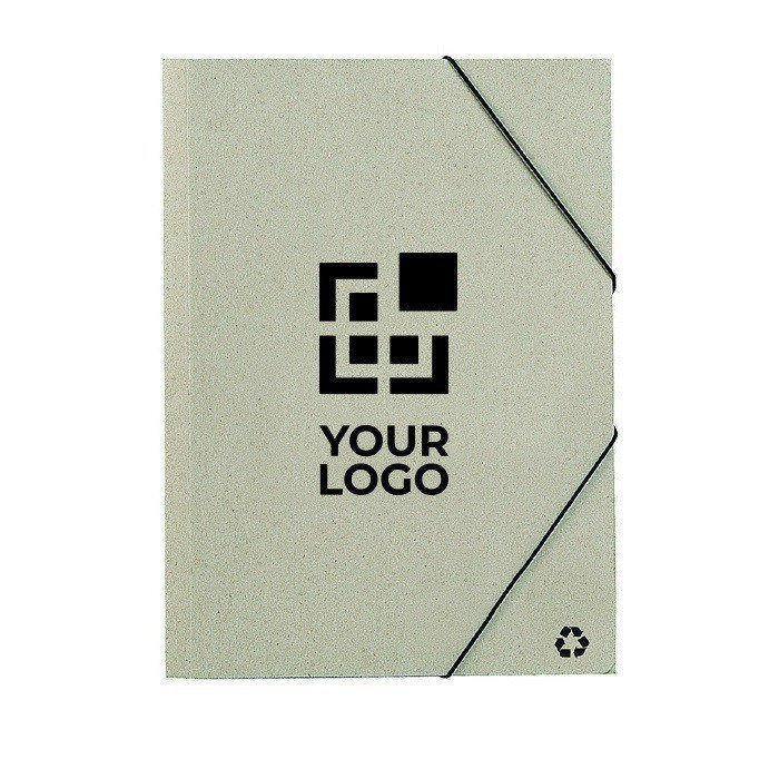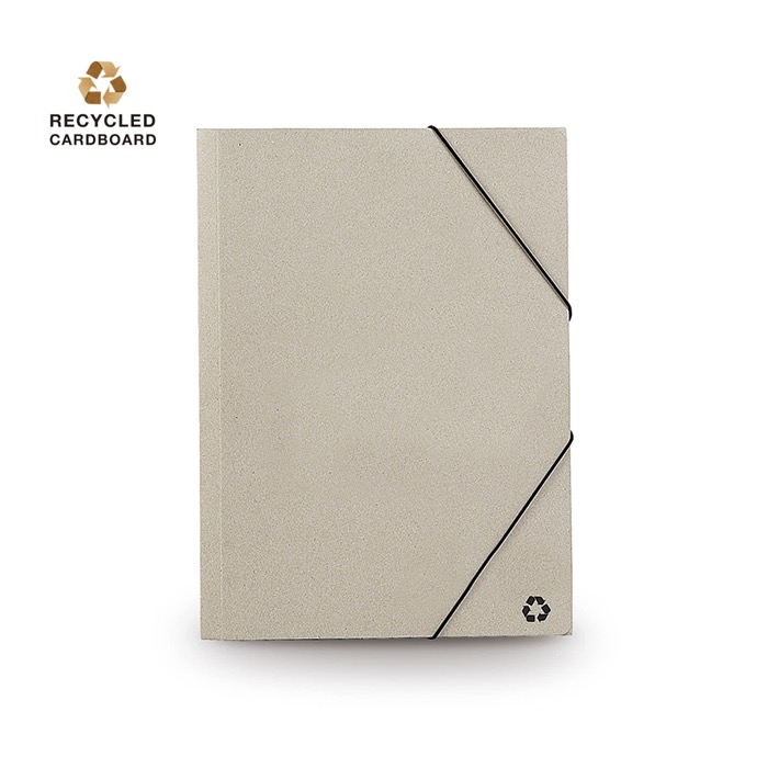 Chemise écologique grande capacité avec fermeture élastique en carton recyclé flexible et système de pliage triple.
