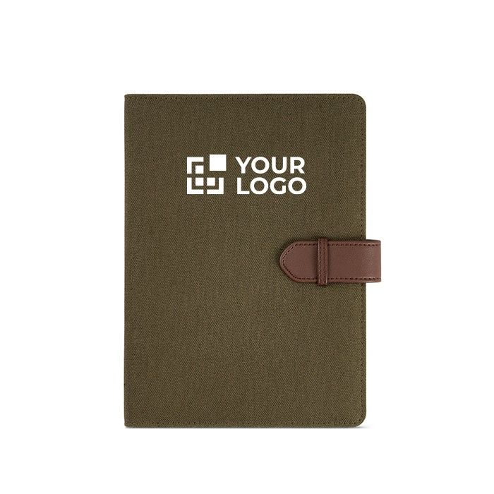 Porte-documents A5 en coton recyclé à fermeture pression et bloc-notes