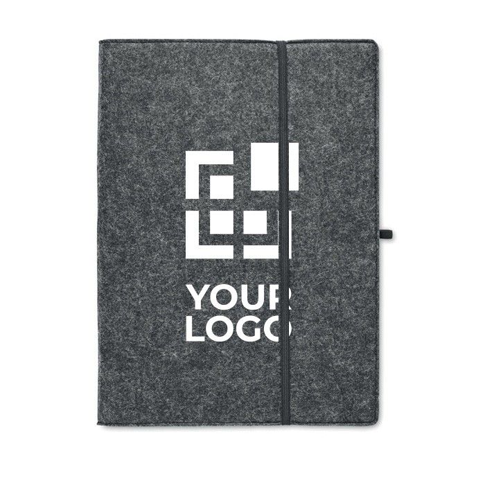 - Conception durable en feutre RPET avec bloc-notes et porte-stylo A4 inclus.
