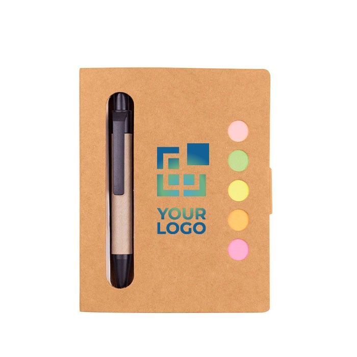 Bloc-notes écologique avec stylo, idéal pour communication responsable.